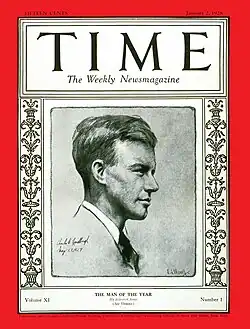 ![]() Homem do Ano de 1927, Charles Lindbergh, o vencedor inaugural do prêmio | |