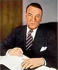 James F. Byrnes | (1879–1972) | Em 1946, Byrnes era Secretário de Estado americano durante a crise do Irã de 1946, tomando uma posição de oposição a Stalin cada vez mais dura. Seu discurso "Correção da Política Alemã" definiu o tom da política americana, repudiando o Plano Morgenthau e dando aos alemães esperança para o futuro. | ||