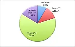 Segundo a Agência Internacional de Energia (AIE), em 2013, 63,8%[20] do petróleo produzido foi destinado ao setor de transporte, o que inclui o seguimento aéreo, marítimo e rodoviário. Aproximadamente 25% do petróleo é utilizado pelo setor industrial, sendo que 16,2% é utilizado como subproduto ou matéria-prima.