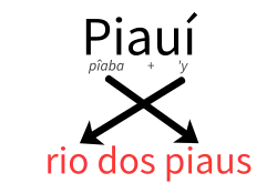 Inicialmente, as terras do Piauí receberam a denominação de Piagüí, nome dado pelos seus indígenas. Mais tarde, chamaram-nas Piagoí. Somente depois é que ficaram conhecidas por Piauí[8]. O topônimo "Piauí" vem da língua tupi, na qual significa "rio das piabas" (também chamadas de piava ou piau).[9]