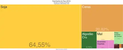 - 1 2 «Exportações do Piauí (2012)». Plataforma DataViva. Consultado em 13 de janeiro de 2014. Arquivado do original em 16 de janeiro de 2014
