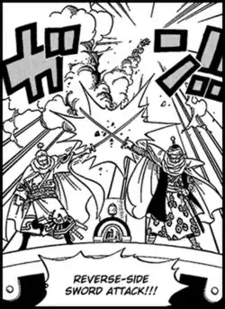 - ↑ Oda, Eiichiro (9 de julho de 2001). «Monochrome Talk». ONEPIECEイラスト集 COLORWALK 1. [S.l.]: Shueisha. ISBN 4-08-859217-4