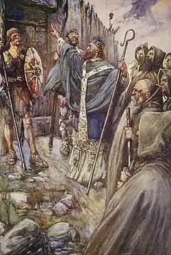 - ↑ Byrne 1973, p. 35, (em inglês)"Elder for kin, worth for rulership, wisdom for the church." Ver também Foster 1996, pp. 32–34, Smyth 1984, p. 67