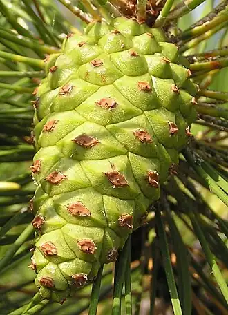 - ↑ Craig W. Benkman (1995). «Wind dispersal capacity of pine seeds and the evolution of different seed dispersal modes in pines» (PDF). Oikos. 73 (2): 221-224. JSTOR 3545911. doi:10.2307/3545911