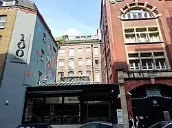 Em 1975, a banda comprou um salão de igreja de três andares em Islington e começou a converter o prédio em um estúdio de gravação e espaço de armazenamento.[142] Em 1976, eles gravaram seu décimo álbum, Animals, em seu recém-terminado estúdio.[143] O conceito de Animais se originou com Waters, vagamente baseado na fábula política Animal Farm, de George Orwell. A letra do álbum descreveu diferentes classes da sociedade como cães, porcos e ovelhas.[144][145] Hipgnosis recebeu crédito pela capa de Animals; no entanto, Waters projetou o conceito final, escolhendo uma imagem da antiga Usina Termelétrica de Battersea, sobre a qual sobrepôs a imagem de um porco.[146][147][148][148][147]