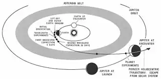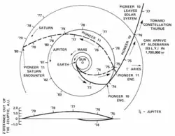 Após a passagem por Júpiter, a sonda segue numa trajetória que a levará para fora do sistema solar. Passa em 1976 pela orbita de Saturno, em 1980 a orbita de Urano e em 1983 a de Plutão.