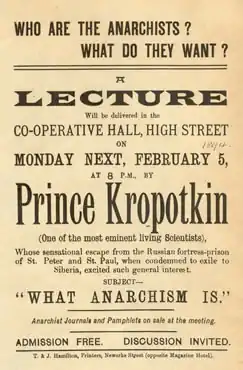 Piotr Aleksêievitch Kropotkin (em russo: Пётр Алексе́евич Кропо́ткин; Moscou, 9 de dezembro de 1842 – Dmitrov, 8 de fevereiro de 1921) foi um geógrafo, economista, cientista político, sociólogo, zoólogo, historiador, filósofo e ativista político russo, um dos principais pensadores do anarquismo no fim do século XIX, considerado também o fundador da vertente anarcocomunista. Suas análises profundas da burocracia estatal e do sistema prisional também são relevantes na área de criminologia.[2]