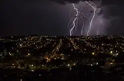 Eventos com ventos fortes ocorrem com relativa frequência. Segundo um estudo da Universidade de São Paulo (USP) de 2016, a taxa de retorno de ventos acima de 75 km/h na cidade foi estimada em 2,8 ocorrências por ano.[88] Os recordes de velocidade incluem rajadas de 158,4 km/h em 29 de março de 2006 e 136,8 km/h em 21 de julho de 2013,[89] conforme dados da estação meteorológica da ESALQ.[90] Não são raras rajadas acima de 80 km/h; por essa razão, os danos resultantes costumam ser leves e pouco noticiados.[90] Um exemplo foi o evento de 17 de dezembro de 2023, com ventos de até 91,8 km/h, que recebeu pouca repercussão na mídia local, limitando-se à queda de algumas árvores e ao leve destelhamento de uma instituição de ensino.[91][92][90]