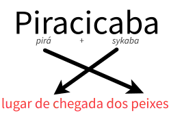 O nome do município vem da língua geral paulista e significa "o lugar de chegada do peixe", através da junção dos termos pirá ("peixe"), syk ("chegar") , ab (sufixo que significa o lugar em que algo é feito ou acontece) e -a (sufixo substantivador).[15] É uma referência às quedas do rio Piracicaba, que bloqueiam a migração (piracema) dos peixes.[16]