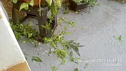 Os episódios de granizo são esporádicos, porém relativamente comuns, e ocorrem com frequência praticamente anual em Piracicaba,[93][94][95] em sua maioria localizados, atingindo poucos bairros (raramente toda a área urbana), e de pequeno porte. Já houve registro de até três episódios de granizo em um único mês, como em fevereiro de 2010[96] e janeiro de 2015.[97] Também já foram registradas pedras de tamanho significativo em meses fora do período chuvoso, como em 21 de julho de 2013[98] e 12 de agosto de 2023.[99]