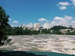 Panorama urbano de Piracicaba Engenho Central Rio Piracicaba Rua do Porto Ponte Estaiada Ponte Pênsil Catedral de Santo Antônio | |