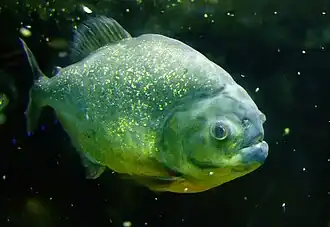 - ↑ Grubich, Justin R.; Huskey, Steve; Crofts, Stephanie; Orti, Guillermo; Porto, Jorge (2012-12-20). "Mega-Bites: Extreme jaw forces of living and extinct piranhas (Serrasalmidae)". Scientific Reports. 2. PMC 3526859 Freely accessible. PMID 23259047. doi:10.1038/srep01009.