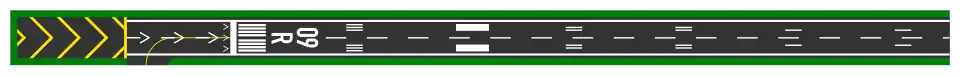 A pista é marcada com marcas, números e linhas centrais que marcam a pista que é utilizada em condições normais, mais uma área de escape livre de obstáculos.