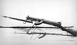 Em 1895, Hiram Maxim produziu a "Maxim em miniatura", uma metralhadora Maxim de calibre de pistola pesando 12,2 kg, vendida em pequenas quantidades para diversos países e testada pelo exército americano, mas não adotada.[5] Em 1896, uma pistola de fogo seletivo foi patenteada pelo inventor britânico Hugh Gabbett-Fairfax.[6]
