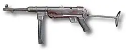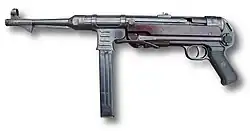 Em 1939, os alemães introduziram a MP 38 de 9mm Parabellum, que foi usada pela primeira vez durante a invasão da Polônia em setembro daquele ano. A produção da MP 38 ainda estava em seus primórdios e apenas alguns milhares de unidades estavam em serviço na época. Ela se mostrou muito mais prática e eficaz em combates a curta distância do que o fuzil de ferrolho Karabiner 98k, padrão alemão. A partir dessa experiência, a MP 40 simplificada e modernizada (comumente e erroneamente chamada de Schmeisser) foi desenvolvida e produzida em larga escala; cerca de um milhão de unidades foram fabricadas durante a Segunda Guerra Mundial. A MP 40 era mais leve que a MP 38. Ela também utilizava mais peças estampadas, tornando sua produção mais rápida e barata.[17] A MP 38 e a MP 40 foram as primeiras submetralhadoras a utilizar coronhas de plástico e uma prática coronha dobrável, características que se tornaram padrão para todos os projetos futuros de submetralhadoras. Os alemães utilizaram um grande número de submetralhadoras soviéticas PPSh-41 capturadas; algumas foram convertidas para disparar munição 9mm Parabellum, enquanto outras foram usadas sem modificações (o cartucho alemão 7,63×25mm Mauser tinha dimensões idênticas ao 7,62×25mm Tokarev, embora ligeiramente menos potente).