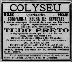 Nesta década Pixinguinha também atuou com destaque como flautista na Companhia Negra de Revistas, que estreou em 31 de julho de 1926 com o espetáculo Tudo preto, mas pouco depois deixou a companhia e entrou para a Ba-ta-clan Preta, onde também permaneceu pouco tempo, mas casou com uma das suas integrantes, Albertina Nunes Pereira, conhecida artisticamente como Jandira Aymoré. Ambas as companhias negras receberam muitas críticas racistas e não tiveram vida longa. Essa oposição fez com que Pixinguinha e outros músicos negros se retraíssem de suas incursões no teatro e nos ritmos modernos e internacionais e voltassem a se concentrar sobre um repertório mais tipicamente associado ao Brasil tradicional, encontrando mais abertura no rádio e nas gravações.[25]