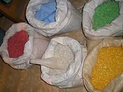 Poliuretanos (PUR) e fibras de PP&A[24] também são frequentemente incluídos como principais classes de commodities, embora geralmente não tenham RICs, pois são grupos quimicamente bastante diversos. Esses materiais são baratos, versáteis e fáceis de trabalhar, tornando-os a escolha preferida para a produção em massa de objetos cotidianos. Sua maior aplicação individual é em embalagens, com cerca de 146 milhões de toneladas sendo usadas dessa forma em 2015, o equivalente a 36% da produção global. Devido ao seu domínio; muitas das propriedades e problemas comumente associados aos plásticos, como a poluição decorrente de sua baixa biodegradabilidade, são, em última análise, atribuíveis aos plásticos de commodities. Existe um grande número de plásticos além dos plásticos de commodities, muitos com propriedades excepcionais.[25]