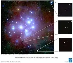 - ↑ Moraux, E.; Bouvier, J.; Stauffer, J. R.; Cuillandre, J.-C. (2003), [http://adsabs.harvard.edu/abs/2003A%26A…400..891M Brown in the Pleiades cluster: Clues to the substellar mass function], Astronomy and Astrophysics, v.400, p.891.
