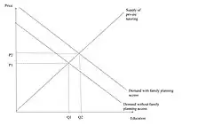 Quando as mulheres podem buscar educação adicional e emprego remunerado, as famílias podem investir mais em cada filho. Crianças com menos irmãos tendem a ficar mais tempo na escola do que aquelas com muitos irmãos. Abandonar a escola para ter filhos tem implicações de longo prazo para o futuro dessas meninas, bem como para o capital humano de suas famílias e comunidades. O planejamento familiar retarda o crescimento populacional insustentável, que drena recursos do meio ambiente, e os esforços de desenvolvimento nacional e regional.[10][16]