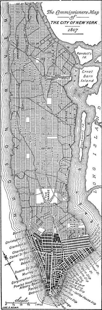 Algumas cidades dos Estados Unidos, na América colonial foram planejadas de antemão antes de terem sido construídas. Exemplos incluem Charleston, Filadélfia e Savannah. O exemplo mais famoso, porém, é o da atual cidade de Washington, DC, a atual capital do país. George Washington contratou Pierre Charles L'Enfant, um arquiteto francês, para planejar a cidade.