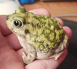 Esses sapos (e numerosos outros anfíbios), entretanto, desenvolveram uma terceira alternativa. A época da metamorfose é controlada pela lagoa. Se essa não seca, o desenvolvimento continua em uma velocidade normal, e os girinos se alimentando de algas finalmente se transformam em sapos pé de espada juvenis. Entretanto, se a lagoa está secando, se cria uma superpopulação e alguns dos girinos embarcam em uma via alternativa de desenvolvimento. Eles desenvolvem uma boca mais larga e necessitam de músculos mais fortes nas mandíbulas que os permita comer, entre outras coisas, outros girinos de Scaphiopus. Esses girinos carnívoros sofrem uma rápida metamorfose, ainda que em uma versão menor do sapo pé de espada juvenil. Mas eles sobrevivem, enquanto que os outros girinos Scaphiopus morrem ou por dessecação ou ingeridos por seus companheiros de lagoa.[2]