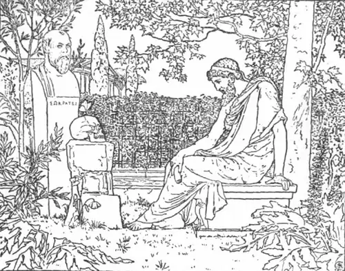 Depois de sua primeira viagem à Sicília, por volta de 388 a.C., aos 40 anos, decepcionado com o luxo e os costumes da corte de Dionísio I de Siracusa e de lá expulso, Platão compra um ginásio perto de Colona, a nordeste de Atenas, nas vizinhanças de um bosque de oliveiras em homenagem ao herói Academo. Ele amplia a propriedade e constrói alojamentos para os estudantes.[55]