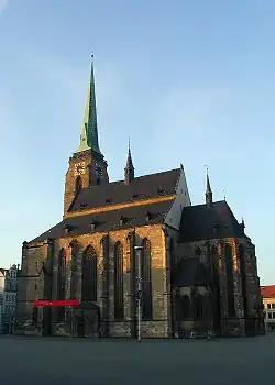 A sua fundação data do ano 1295, pelo rei Venceslau II. Plzeň tem um centro histórico onde destaca-se a catedral gótica de São Bartolomeu, na Praça da República, centro da cidade. A Grande Sinagoga de Plzeň situa-se próximo, construída no estilo neorromânico combinado com elementos da arquitectura neomourisca, a segunda maior sinagoga na Europa.[4] Graças à sua localização única entre outros prédios, conseguiu sobreviver a bombardeamentos aliados próximos ao estabelecimento da fábrica Škoda durante a Segunda Guerra Mundial.