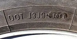O Código DOT é uma sequência alfanumérica de caracteres moldados na lateral do pneu, que identifica o fabricante, tipo de pneu e data de fabricação. DOT é a sigla de Department of Transportation, sediado nos Estados Unidos.[10]