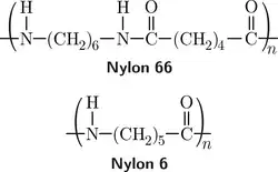 As poliamidas existem em uma grande varidade, conforme sua composição polimérica. Dependendo dos grupos funcionais ligados a ela e do número de carbonos que compõem os monômeros da-se um nome diferente. Tradicionalmente a poliamida sem grupos especiais tem nomenclatura de poliamida x,y onde x e y representam o número de carbonos dos dois monômeros presentes.