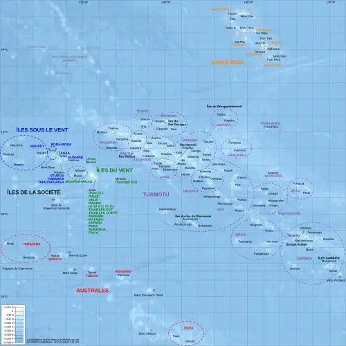 - Arquipélagos de Tuamotu-Gambier (sendo Papeete a capital-administrativa provisória) :