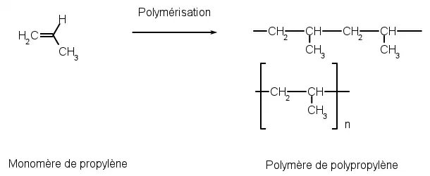 Tradicionalmente a síntese do polipropileno envolve a reação do polimerização por adição do propeno, um subproduto gasoso do refino de petróleo, na presença de um catalisador e sob condições controladas de pressão e temperatura. O tipo de polimerização que ocorre neste processo é a polimerização por coordenação, utilizando-se de catalisadores complexos com metais de transição , como o catalisador Ziegler-Natta que controla a posição do grupo metila na cadeia polimérica de forma ordenada.[24][25]