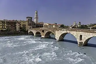 É no século III a.C. que os romanos começam a se dedicar à construção de pontes em arco, atingindo um desenvolvimento nas técnicas de construção e projecto nunca antes visto e dificilmente superado nos mil anos seguintes.[4] Exemplos desta magnífica capacidade de construção são algumas pontes que perduraram até aos nossos dias, como, por exemplo, a pons Aelius(hoje ponte Sant'Angelo) (134 a.C.), sobre o Tibre, (onde terá sido usada pozzolana (uma espécie de cimento que mantém a resistência mesmo submerso),[7] a ponte de Alcántara, em Toledo[8] ou o aqueduto de Segóvia(século I).[9]
