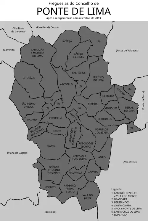 O município de Ponte de Lima está dividido em 39 freguesias:[14]