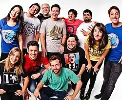 Porta dos Fundos é uma produtora de vídeos de comédia veiculados na internet.[2] Originalmente o elenco contava com Antonio Tabet, Clarice Falcão, Fábio Porchat, Gregório Duvivier, Gabriel Totoro, João Vicente de Castro, Júlia Rabello, Letícia Lima, Luis Lobianco, Marcos Veras, Marcus Majella e Rafael Infante.[3]