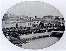 Em 1822 a vila ganhou foro de cidade. A partir de então chegaram os primeiros imigrantes alemães, instalando restaurantes, pensões, pequenas manufaturas, olarias, alambiques e diversos estabelecimentos comerciais. Como a situação econômica da Capitania não ia bem, pressionada por pesados impostos e negligenciada pelo governo imperial, em 1835 estalou em Porto Alegre a Revolução Farroupilha. Tomada em 1836 pelas tropas imperiais, a partir de então a cidade sofreu três longos cercos até o ano de 1838, sendo o mais duradouro e contínuo já registrado numa cidade brasileira. Foi a resistência a esses cercos que fez D. Pedro II dar à cidade o título de "Leal e Valerosa".[15] Apesar do inchaço populacional daqueles tempos, a malha urbana só voltou a crescer em 1845, após o fim da revolução e com a derrubada das muralhas que cercavam a cidade.[16][17]