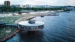 Panorama urbano a partir do Lago Guaíba Casa de Cultura Mario Quintana Estátua do Laçador Usina do Gasômetro Monumento ao Expedicionário Monumento aos Açorianos e Centro Administrativo Fundação Iberê Camargo Basílica Menor de Nossa Senhora das Dores | |