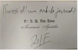 Depois de sua controversa atividade como diretor do Núcleo Colonial “Rodrigo Silva’’, o padre Jean Baptiste Van Esse exerceu as funções de vigário em várias cidades do interior: Cajuru, Matão, São Carlos, Santa Barbara do Rio Pardo e depois em Curitiba. Terminou a sua vida como professor do Seminário Arquidiocesano de São Paulo.[9]
