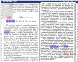 O mesmo otimismo no já mencionado Jornal de Bruxelles de 30 de junho de 1888: "Il sera le premier noyau colonial organisé avec une population entièrement belge, et tout indique que cette initiative produisant tous les résultats désirés, d'autres entreprises du même genre ne tarderont pas à se constituer". Tradução livre: "Será o primeiro núcleo colonial organizado com população inteiramente belga, e tudo indica que esta iniciativa produzirá todos os resultados desejados; outros empreendimentos do mesmo tipo não tardarão a ser formados."[9]