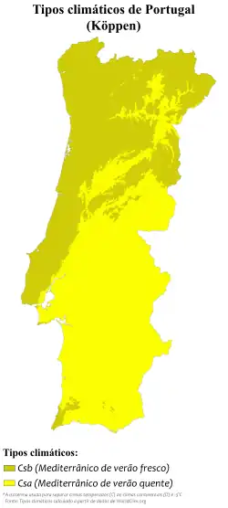 Situado no extremo sudoeste europeu, Portugal Continental faz fronteira apenas com um outro país, Espanha a Este e a Norte, a Oeste e a Sul é limitado pelo Atlântico. O território é dividido no continente pelo rio principal, o Tejo. A norte, a paisagem é montanhosa nas zonas do interior com planaltos, intercalados por áreas que permitem o desenvolvimento da agricultura. A sul, até ao Algarve, o relevo é caraterizado por planícies, sendo as serras esporádicas. Outros rios principais são o Douro, o Minho e o Guadiana, que tal como o Tejo, nascem em Espanha. Entre os rios que têm todo o seu percurso no território português temos o Vouga, o Sado, o Zêzere e o maior, o Mondego (estes últimos nascem na Serra da Estrela, onde se situa a montanha mais alta de Portugal Continental, a Torre — 1 993 m de altitude máxima, e a 2.ª mais alta de Portugal — apenas atrás da Montanha do Pico, nos Açores).[68]