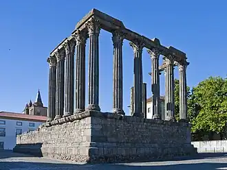No século III, com as reformas do imperador Diocleciano (r. 284–305), foi criada a Galécia, a norte do Douro, a partir da Tarraconense, abrangendo o norte de Portugal, com capital administrativa em Brácara Augusta. A romanização marcou a cultura, em especial a língua latina, que foi a base do desenvolvimento da língua portuguesa.[33] Com o enfraquecimento do império romano, a partir de 409, o território é ocupado por povos germânicos como vândalos na Bética, Alanos que fixaram-se na Lusitânia e suevos na Galécia. Em 415 os visigodos entram na Península, a pedido dos romanos, para expulsar os invasores. Face a isso os vândalos e os Alanos deslocam-se para o norte de África. Os suevos, sob o Rei Hermerico estabeleceram o seu reino com capital em Braga,[34] enquanto os visigodos fundam o seu reino com capital em Toledo.