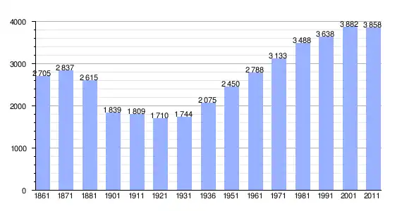 | Variação demográfica do município entre 1861 e 2011[3] |