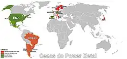 Brasil: O Brasil já tem uma certa tradição no power metal, embora suas bandas não sejam muito conhecidas no país, possuem renome mundo afora, principalmente no Japão. As bandas mais conhecidas do gênero são: Angra, Shaman, Almah, Hangar, Viper, Hibria, Aquaria, Caravellus e Burning in Hell.