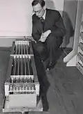 Maurice Vincent Wilkes | Professor Wilkes é mais conhecido pelo projeto do EDSAC, o primeiro computador com um programa embutido. Construído em 1949, o EDSAC usava uma "mercury delay line memory". É também autor, com David Wheeler e Stanley Gill, de "Preparation of Programs for Electronic Digital Computers" em 1951, em que bibliotecas de programas foram introduzidas de forma eficiente. | |