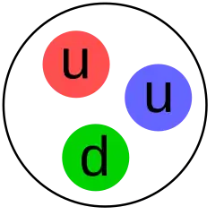 • O próton é formado por dois quarks up e um down, sendo escrito como: uud.