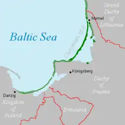 A expansão da Prússia com base na sua ligação à Liga Hanseática cortou tanto a Polônia como a Lituânia da costa do Mar Báltico e do comércio com o exterior. [8] Isto significava que a Polónia e a Lituânia seriam inimigas tradicionais da Prússia, que ainda era chamada de Cavaleiros Teutônicos. [9]
