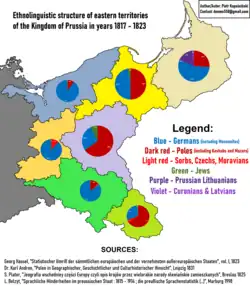 - ↑ Belzyt, Leszek (1998). Sprachliche Minderheiten im preussischen Staat: 1815 - 1914; die preußische Sprachenstatistik in Bearbeitung und Kommentar. Marburg: Herder-Inst. ISBN 978-3-87969-267-5