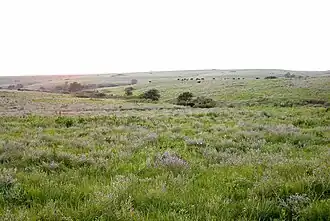 Predominam gramíneas; alguns arbustos e flores mas quase nenhuma árvore.