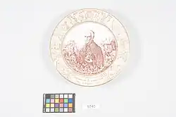 Os pratos decorativos no Brasil também possuíam temática cívica ou patriótica, alguns celebrando datas comemorativas, inauguração de catedrais.