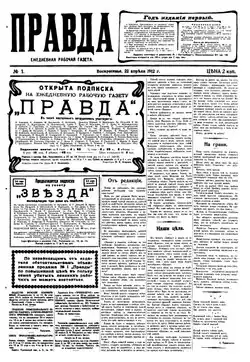Os bolcheviques finalmente realizaram seu plano quando a primeira edição do novo Pravda foi lançada em São Petersburgo, em 22 de abril de 1912. A publicação continuou legalmente (ou seja, sujeita à censura oficial) até ser fechada pelo governo em julho de 1914, no início da Primeira Guerra Mundial.
