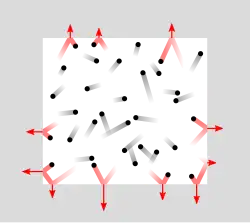 Segundo a teoria cinética dos gases, um gás é composto por um grande número de moléculas que se movimentam muito rápido e de forma aleatória, causando frequentes colisões entre as moléculas do gás e com as paredes de qualquer tipo de recipiente. Essas moléculas apresentam um certo momento, dado pelo produto entre a massa e a velocidade da molécula. No instante em que uma molécula colide com uma parede, as moléculas transmitem momento à superfície, e como consequência produzem uma força perpendicular à essa superfície. A soma de todas essas forças oriundas de colisões em uma determinada superfície, dividida pela área da mesma, resulta na pressão exercida por um gás em um determinado recipiente.[1]